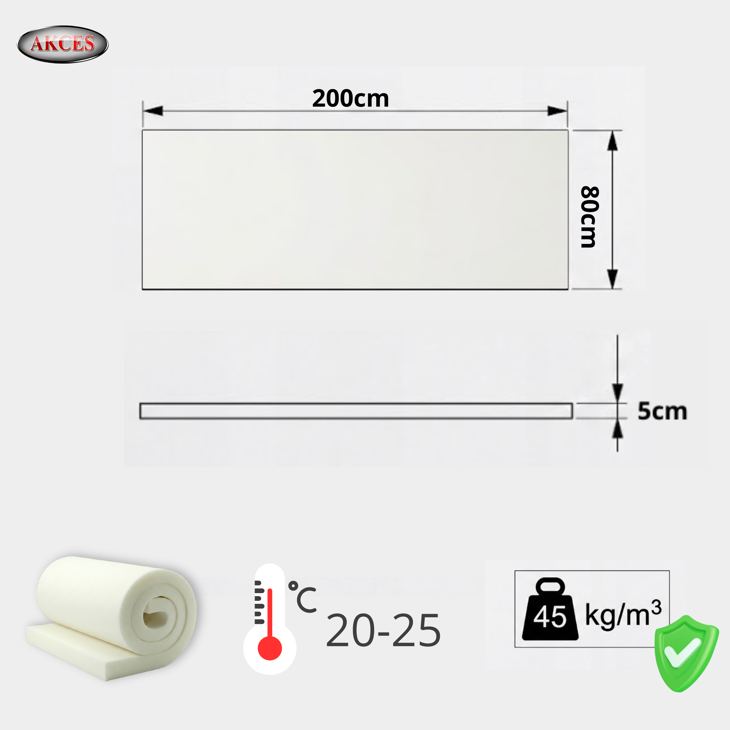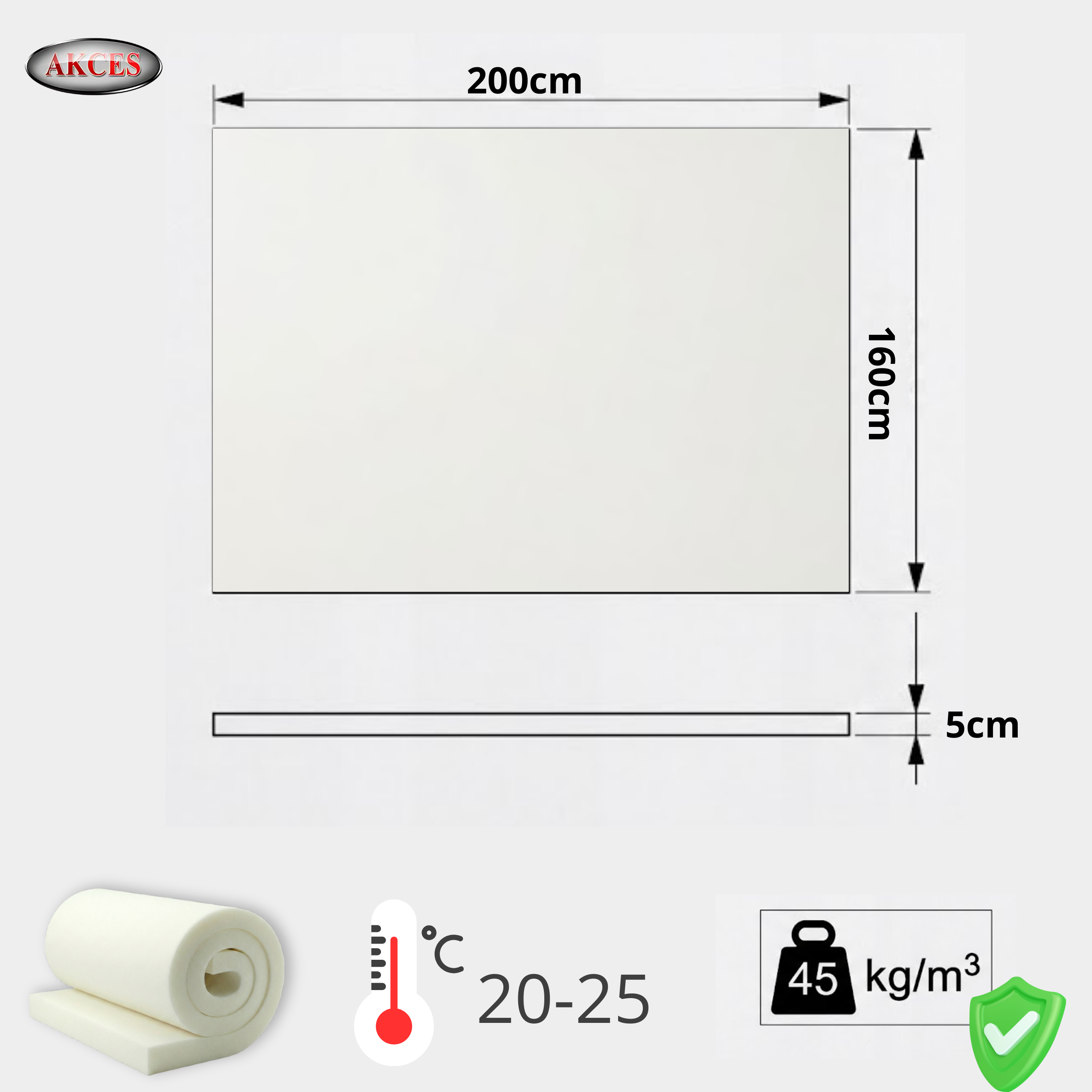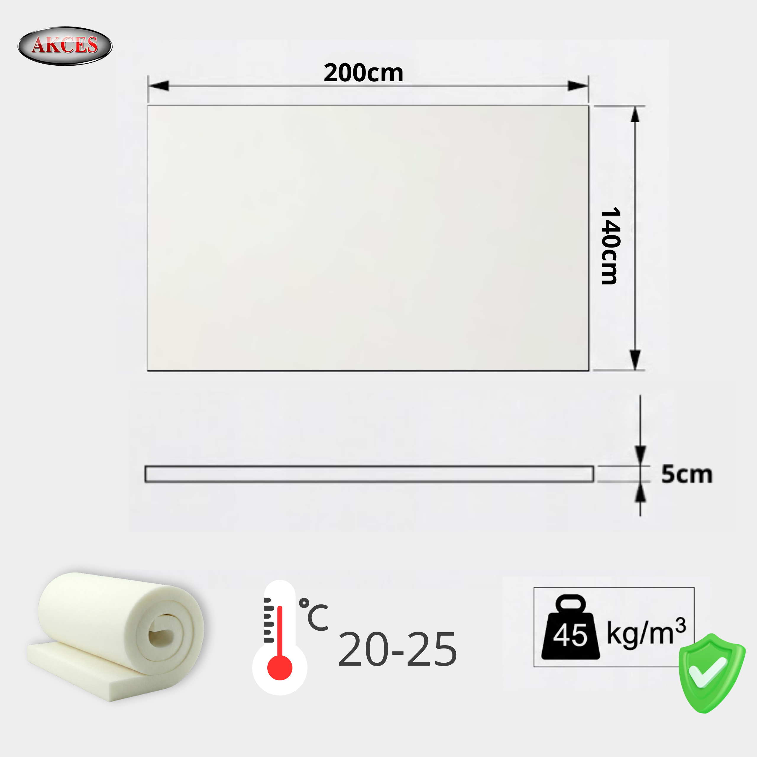 - Grubość: 5 cm (+/- 2 mm)